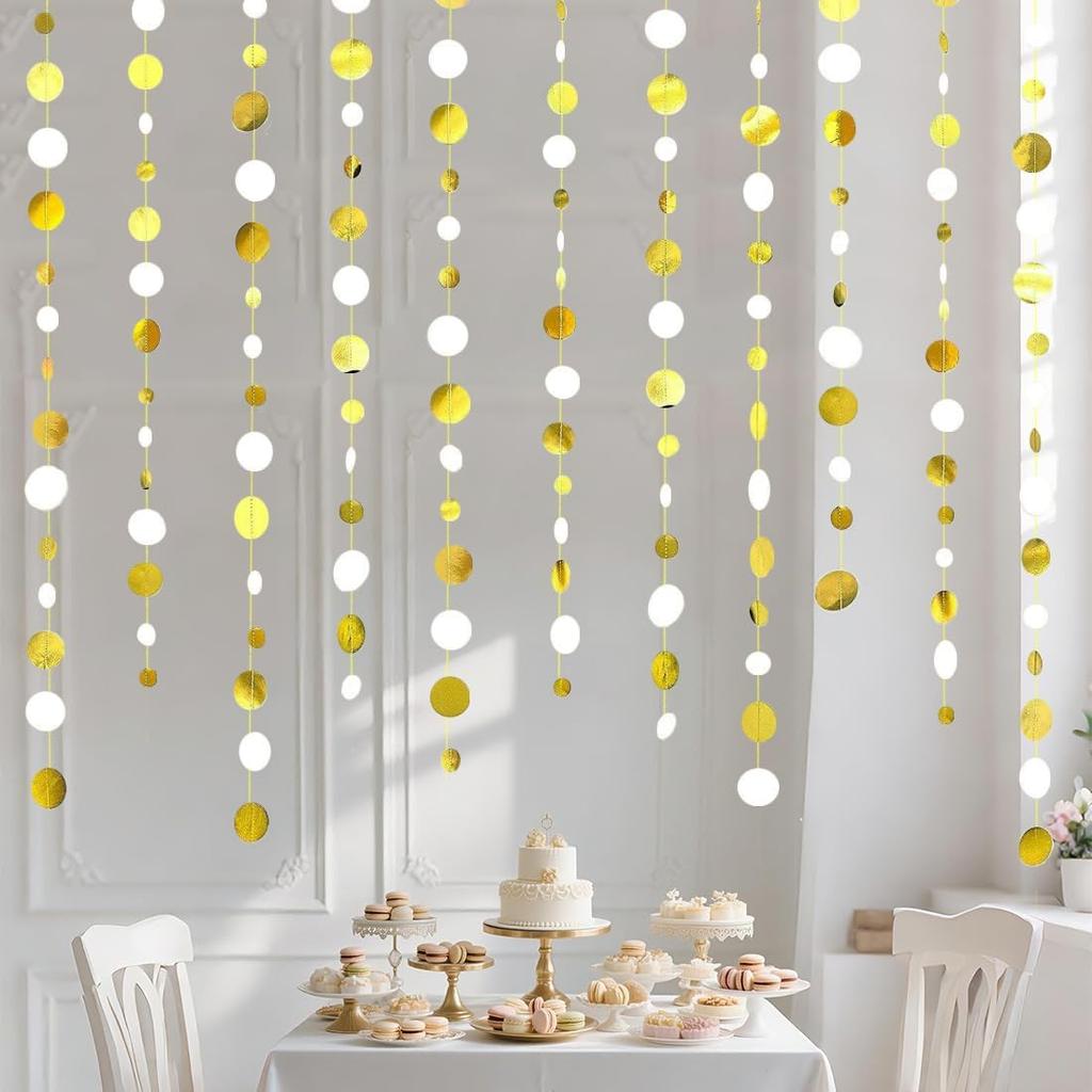 Glitter White and Gold Circle Dots Paper Garland White Gold Circle Dot Streamer 40 Feet Polka Dot Hanging Bunting Banner Backdrop for Birthday — tüm dünyaya ücretsiz teslimat ile online ürün satın alın!