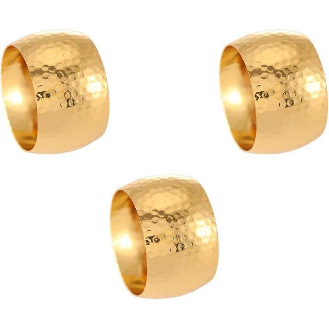 3Pcs Gold Napkin Rings Elegant Hammered Golden Ring Holders Bulk for Dining Table Metal Napk Holder for Events Dinner Parties Wedding Decor Tableware