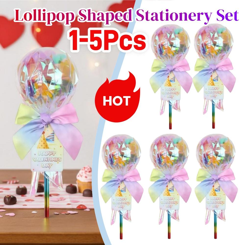 DIY Valentine Gift Exchange for Kids Giant Lollipop Stationery Set with Card for Classroom Exchange Gifts School Party Supplies