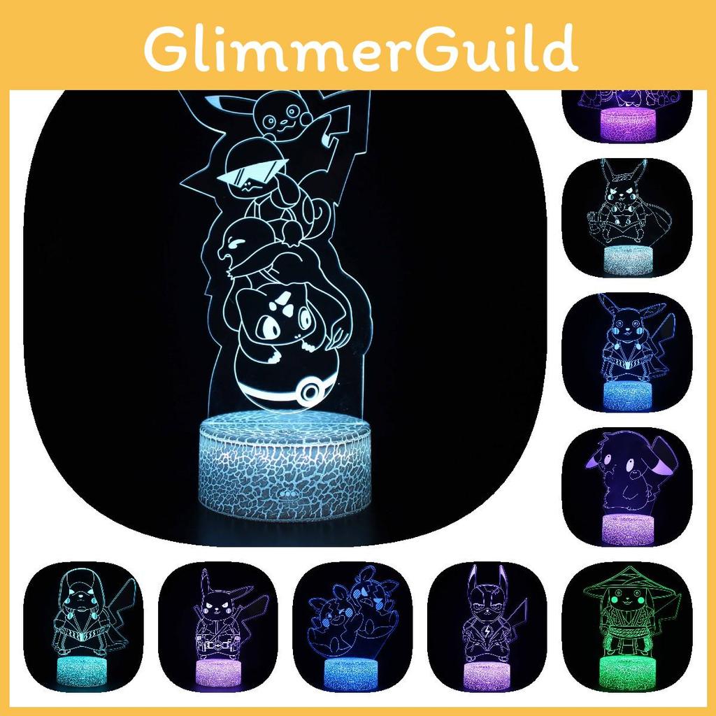 Creative 3d Pikachu Night Light Cute Table Lamp Colorful Atmosphere Lamp Gift Idea