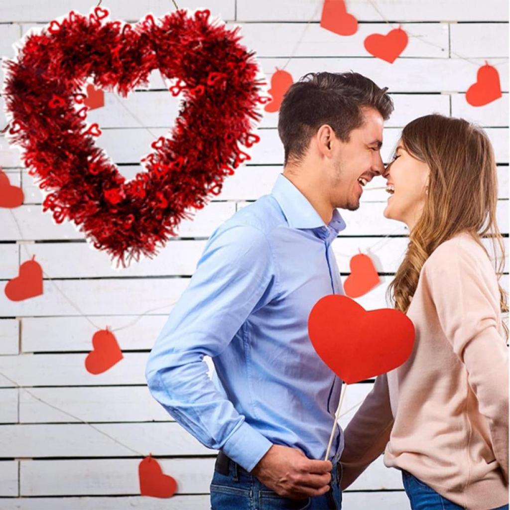 Sevgililer Günü Ön Kapı Çelengi, Tel Kalp Çelenkli İç Mekan Dış Mekan Dekorasyonu, Sevgililer Günü Kalp Çelenkli Tabela Duvara Asılan Dekorasyon