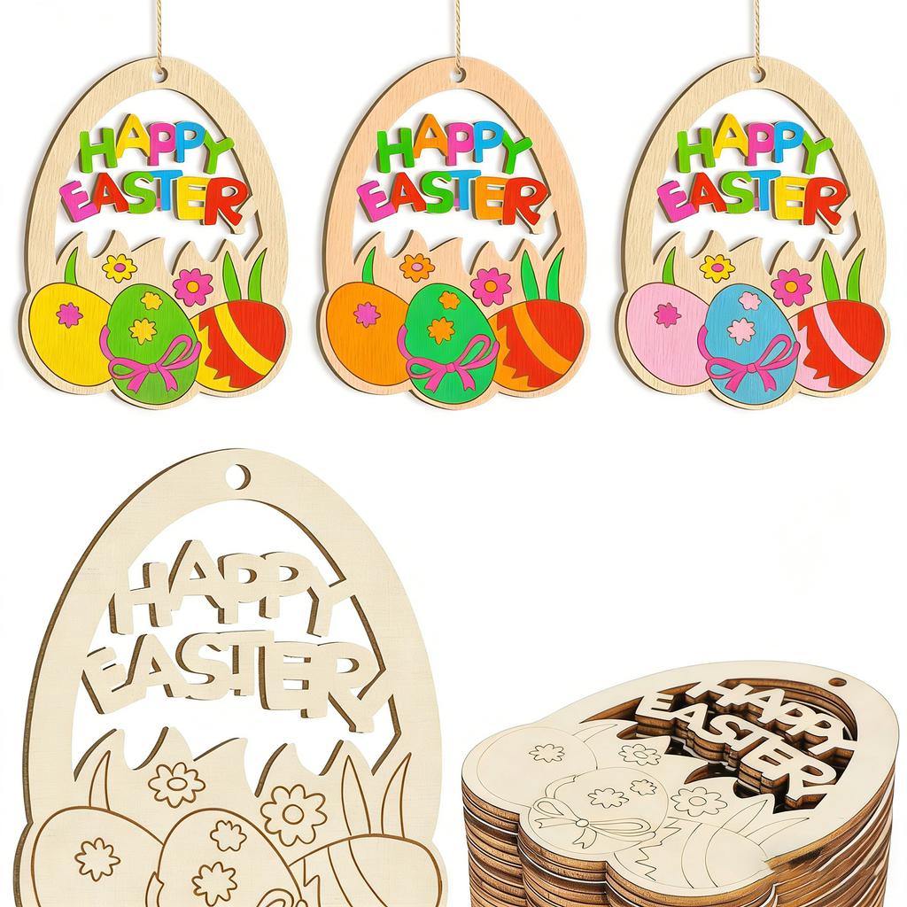 Easter Wooden Chip Hanging Decorations, Small Household Items, Wooden Eggs, Children's Hand-painted DIY Wooden Chips, Baby Doodles — tüm dünyaya ücretsiz teslimat ile online ürün satın alın!
