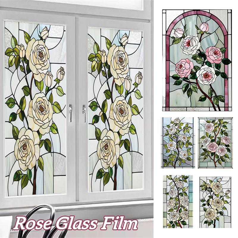 Retro Rose Glass Film Static Cling Self-adhesive Stained Glass Stickers Flower Art Painting Privacy Protection Window Film — tüm dünyaya ücretsiz teslimat ile online ürün satın alın!