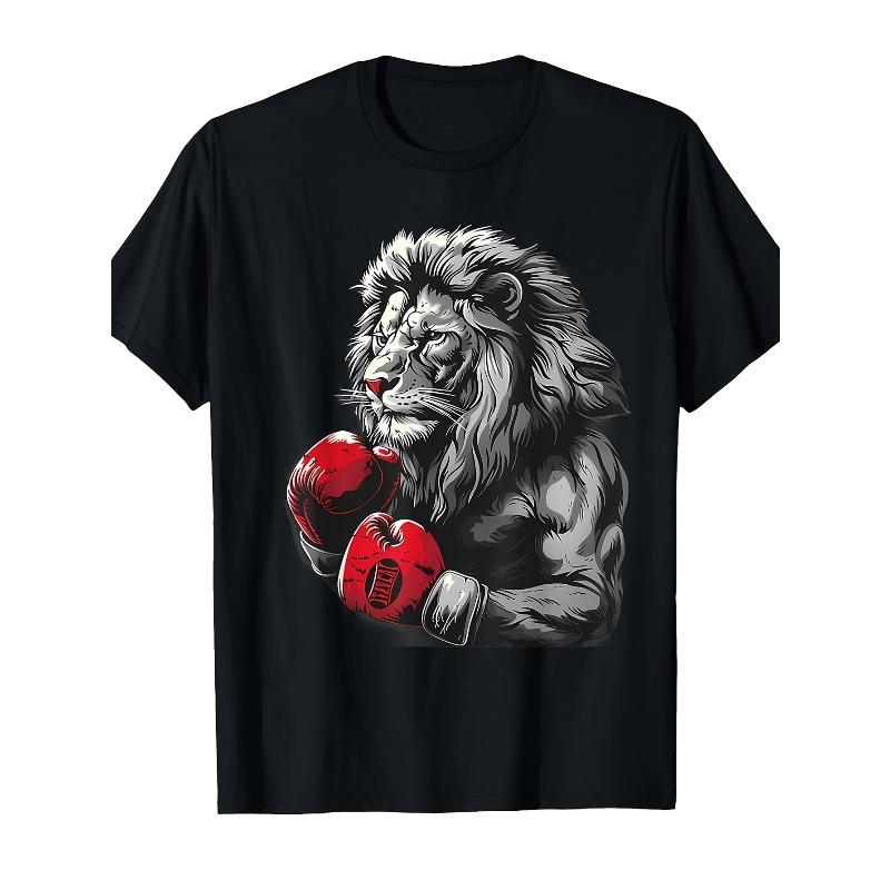 European sizes Men'S Graphic T-Shirt - Retro Martial Arts Tee with Lion Boxer Design, Round Neck Short Sleeve Casual & Gym Wear for Kickboxing Fans