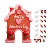 Bu Sevgililer Günü Mini golf oyun seti, bir mini golf sopası, beyaz golf topları, yeşil yapay çim paspaslar ve şenlikli şeker kamışı sopaları ile eksiksiz, oynamaya hazır bir deneyim sunar.. Kalp desenleri, güller ve "Happy Valentine's Day" yazısıyla süslenmiş büyüleyici bir zencefilli kurabiye evi olarak tasarlanmıştır, tatil dekorasyonu veya fotoğraf aksesuarları için mükemmel sıcak, romantik bir atmosfer yaratır..