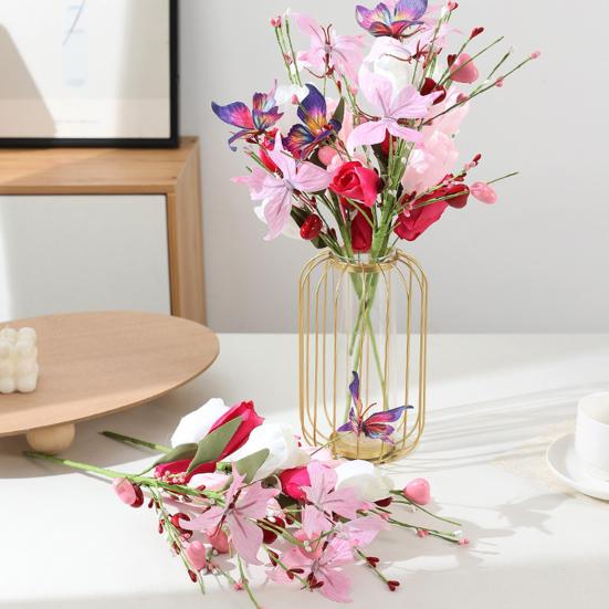Artificial Tulip Flower Stem Heart Shaped Berry Picks for Valentine's Day Anniversary Flower Bouquets Wedding Home Decor