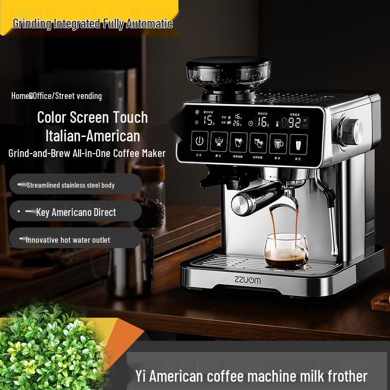 American Fully Automatic Touchscreen Coffee Machine with Built-in Grinder and Steam Milk Frother for Home and Office