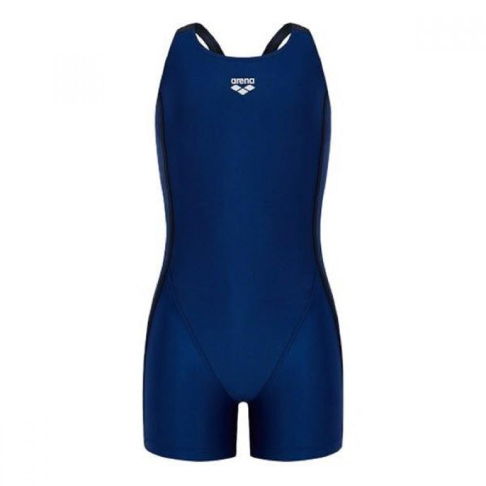 The Arena Girls' 3-Part Racerback Swimsuit A5FG1GL07_NVY features a sporty design with side line rubber. This product provides stability when worn and is suitable for swimming and water sports activities.