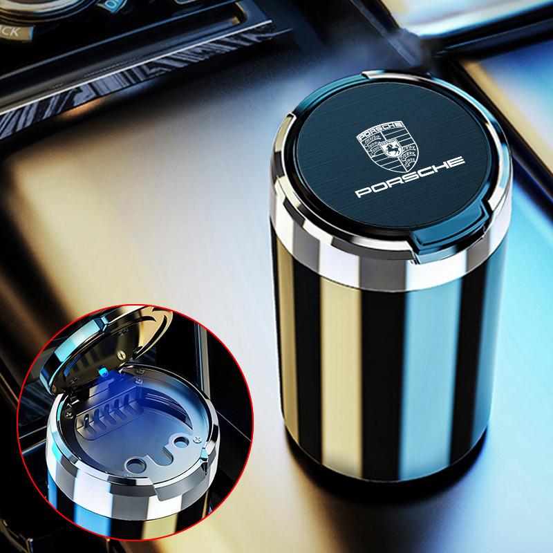 Portable Car Interior Ashtray With Lid Ashtrays Cup Holder For Porsche 911 Cayenne Macan Carrera-GT 928 944 968 Panamera Boxster
