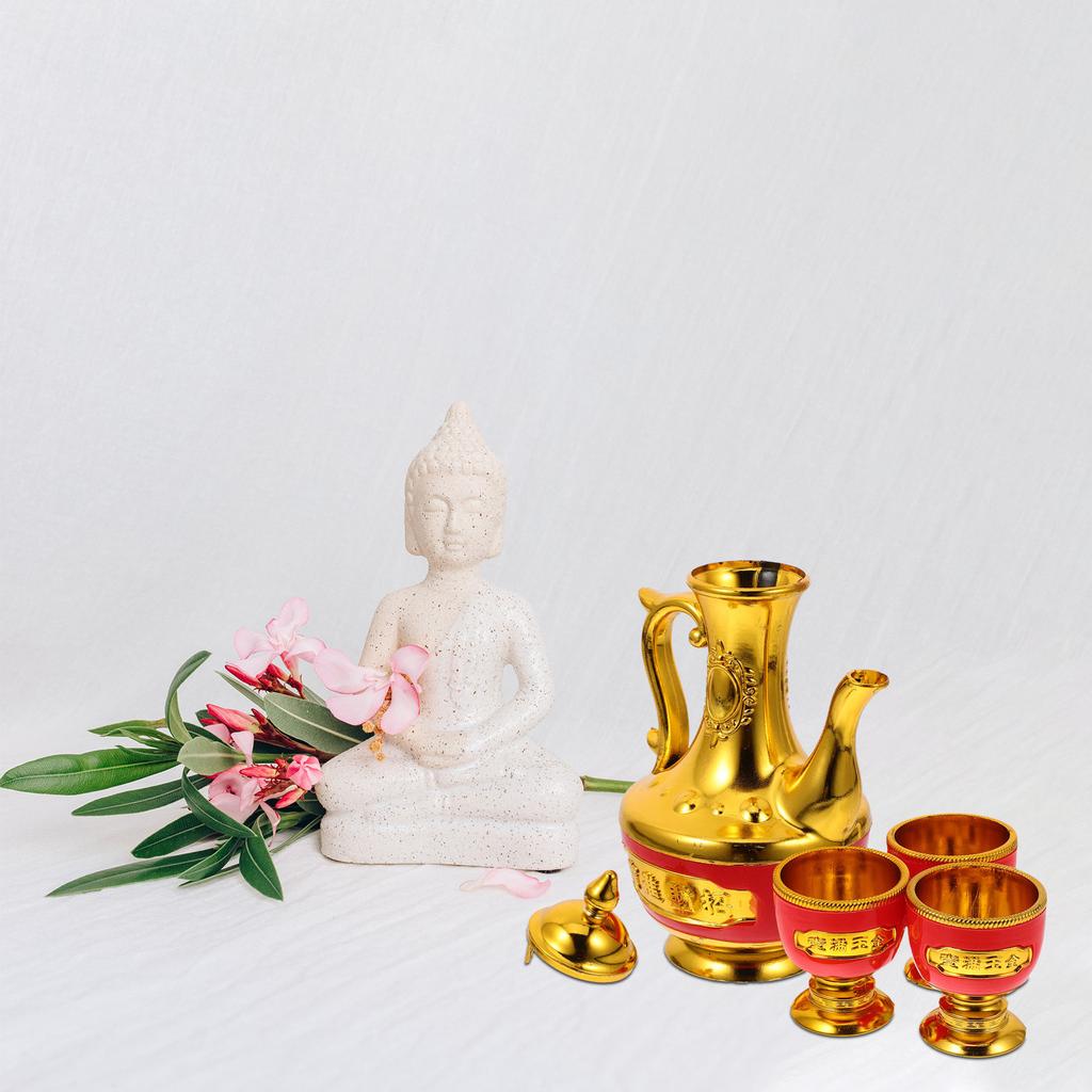 Luxury Gold Finish Worship Set with Chalices Water Bowls for Buddhist Altar Tibetan Rituals Divine Offerings Gold Chalice