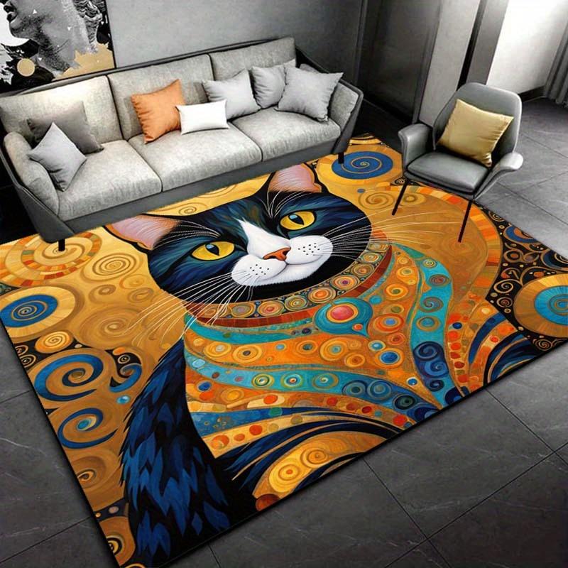 Vibrant Cat Art Rug for Pet Lovers | Colorful Abstract Carpet with Swirl Patterns | Cozy Living Room Decor Skid resistant carpet