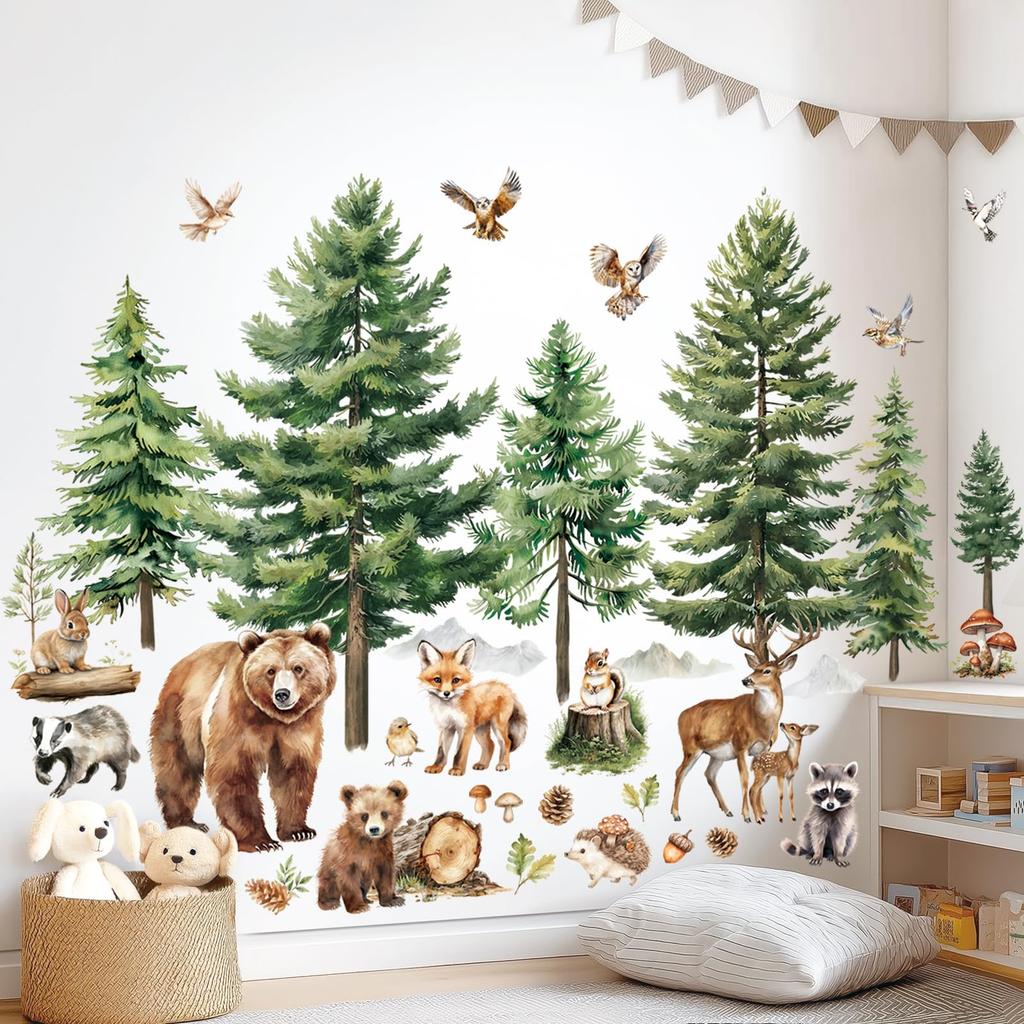 DECOWALL Watercolor Forest Animals Wall Stickers with and Tree Design for and Removable DIY Wall Decor for and Infants Bear, Deer, Fox, Kids' Rooms,