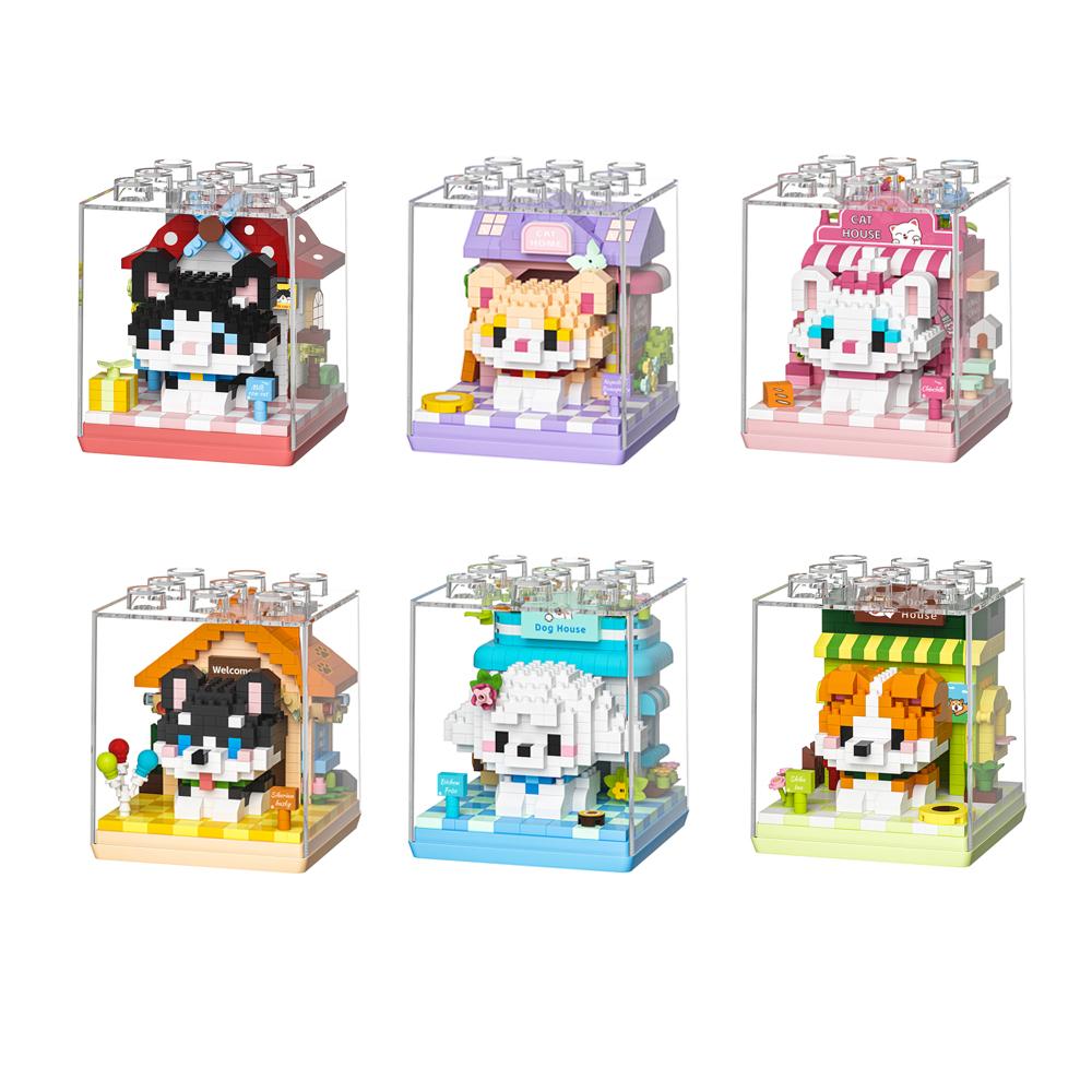 Non-Toxic Cute Mini Dog&Cats Pets House Micro Particle Building Blocks Toys Animals Models Diy Toys Birthday Gifts For Kids