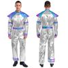 Mens Alien Robot Costume Retro Space Theme Long Sleeve Jumpsuit Shiny Metallic Halloween Party Outfit