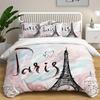 Eiffel Tower Duvet Cover Set Romantic Paris Tower Bedding Set French Style Home Decor Cityscape Quilt Cover King For Girls Boys