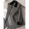 Women's 2025 Winter Dark Grey Twill Blazer - British Style Commuting Jacket