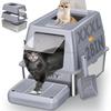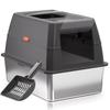 Stainless Steel Cat Litter Box with Anti-Splash Top-Entry Lid, Sizes S-XXXL.