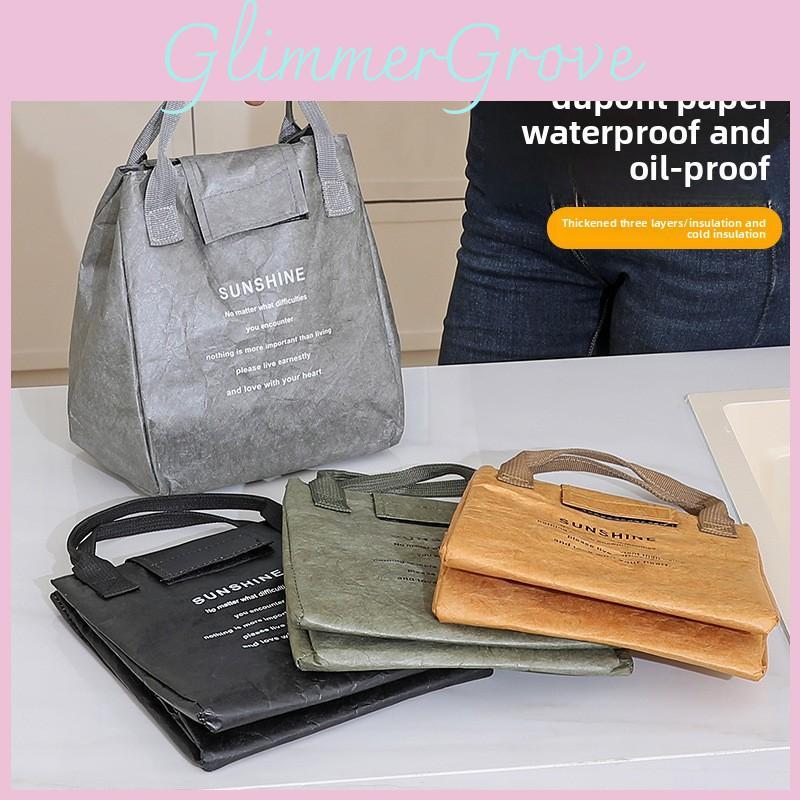 This lunch bag features durable DuPont paper material, offering a lightweight yet sturdy design for daily commutes and outdoor activities.it supports standard-sized meal containers. Ideal for work, school, or travel, it keeps meals protected and organized. Wipe clean with a damp cloth for maintenance.