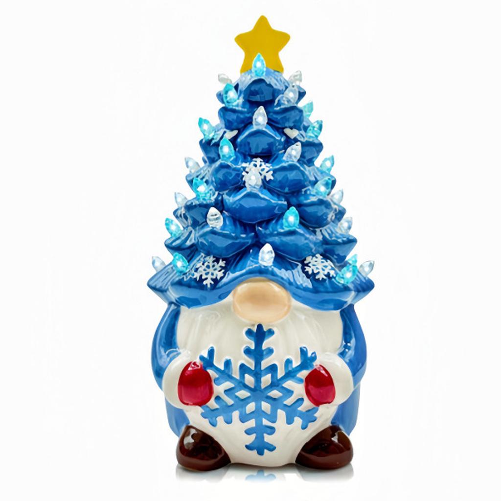 Blue Lighted Dwarf Decorations Christmas Tree Colorful Light Home Festivity Lighted Christmas Gnome Tree Resin Mini Glow