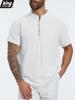 Yaz Yeni Erkek Pamuk Keten Tişört Kısa Kollu Nefes Alabilir Hafif Düz Renk Erkek Moda Henley Yaka Düğmeli Üst