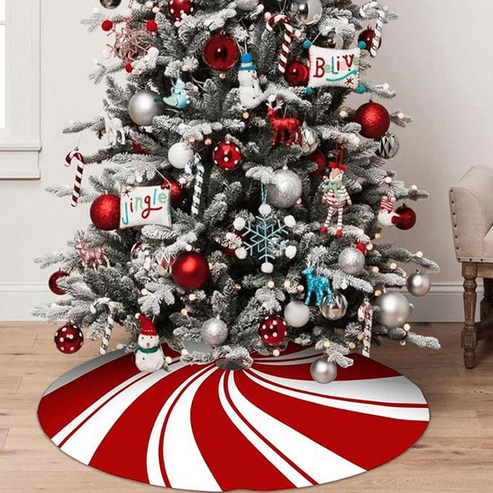 120cm Christmas Tree Skirt Red Swirl Peppermint Candy Snowman Reindeer Snowflake Xmas Home Party Decor Base Cover Carpet
