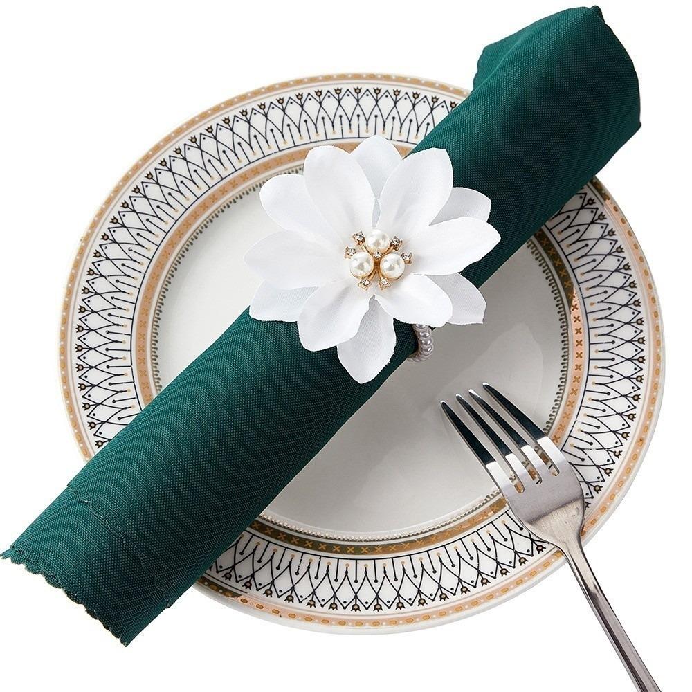 3pcs White Napkin Rings Silk Flower Napkin Buckles Vintage Napkin Holders Dinner Table Decoration