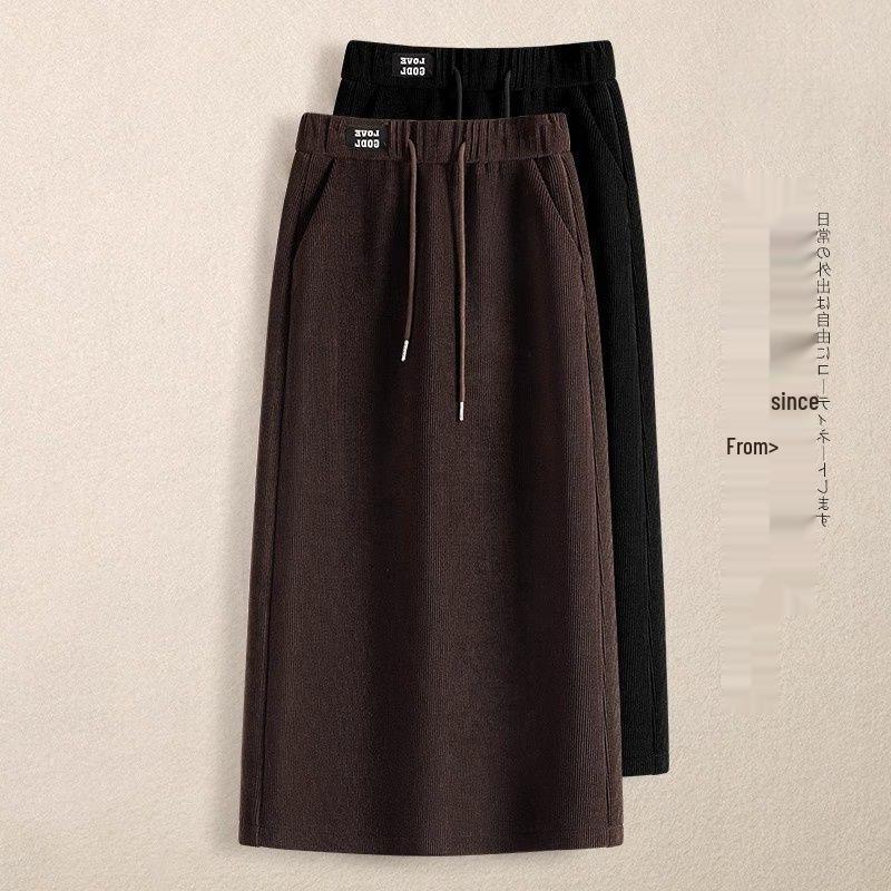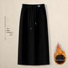 Women's Plus Velvet High Waist Midi Skirt - A-Line, Drawstring Elastic Waist, Straight Hem, Hip-Hugging, Autumn/Winter 2025 — tüm dünyaya ücretsiz teslimat ile online ürün satın alın!