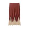Women's European & American Color Block Lace Trim Silk Satin Skirt — tüm dünyaya ücretsiz teslimat ile online ürün satın alın!
