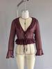 European & American Style Women's Chiffon Shirt with French Lace-up Waist, Embroidered Ruffles, and Long Sleeves