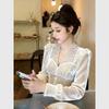 Elegant White Velvet Lace-Cinched Shirt for Women