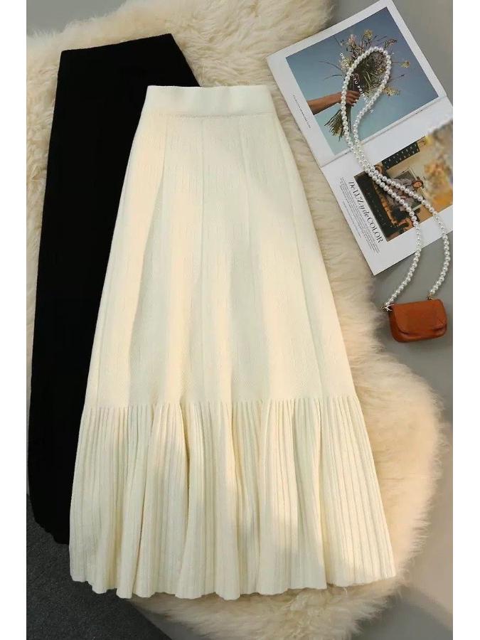 Women's High Waist Ruffle Knit Skirt - Retro A-line, Autumn/Winter, Slimming, Long Hem. — tüm dünyaya ücretsiz teslimat ile online ürün satın alın!