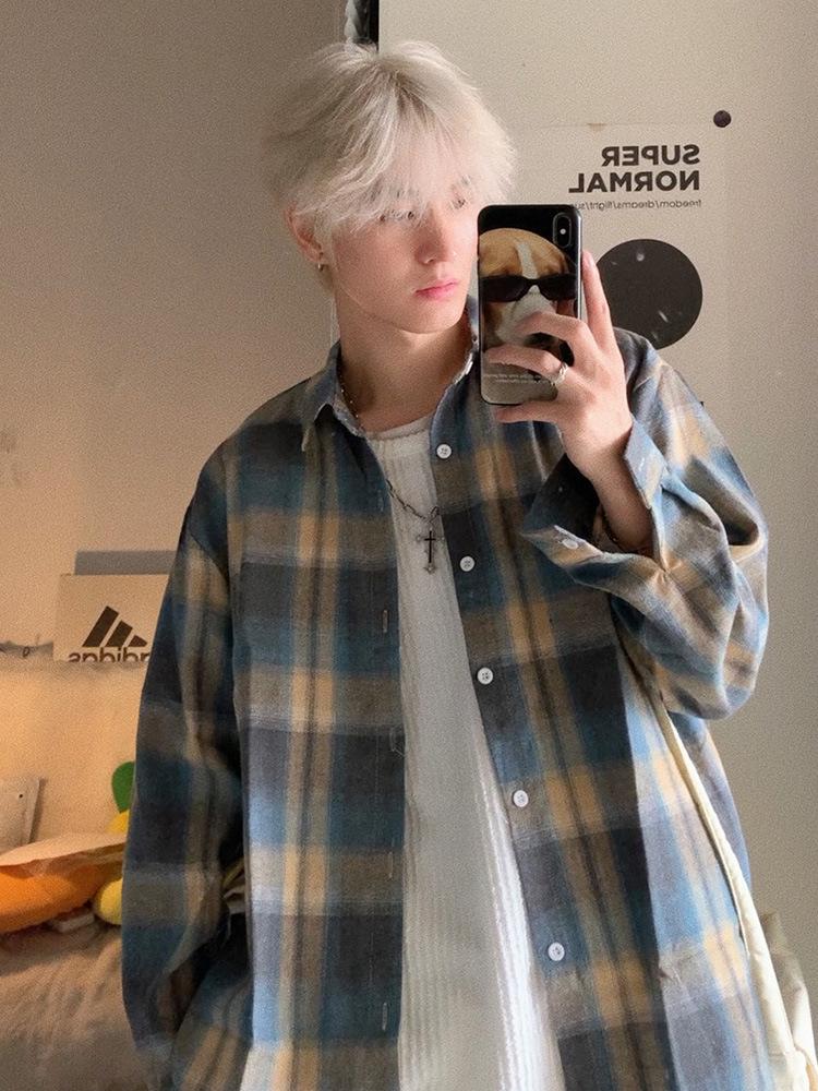 Dopamine Retro Plaid Long-Sleeve Shirt - Unisex Vintage American Style