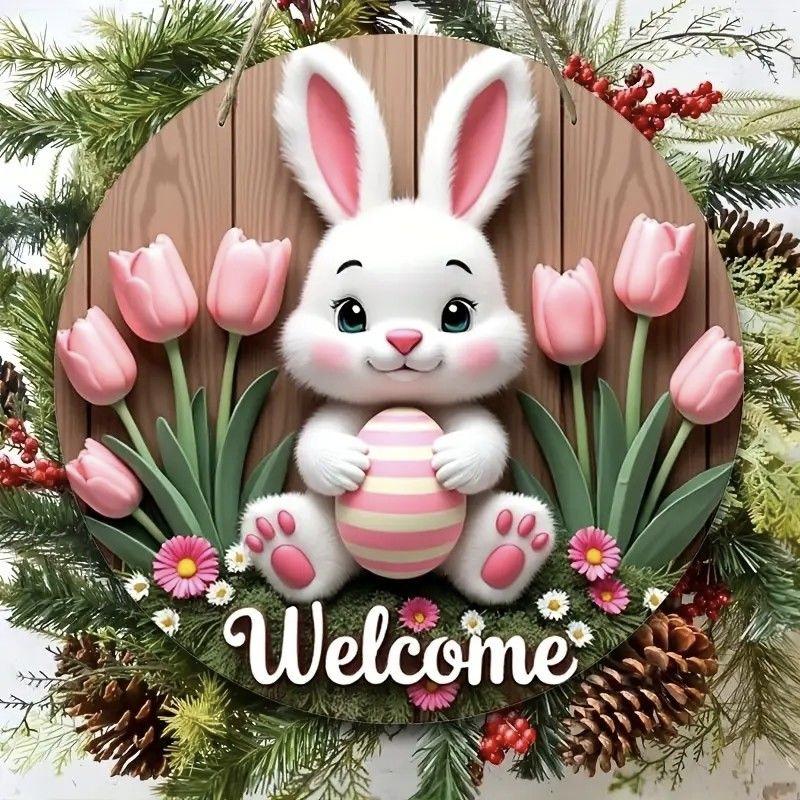 Cute Tulip Rabbit Wooden Hanging Sign, Aesthetic Room Decor for Door, Living Room & Bedroom, Sweet Pastoral Style Wall Plaque — tüm dünyaya ücretsiz teslimat ile online ürün satın alın!