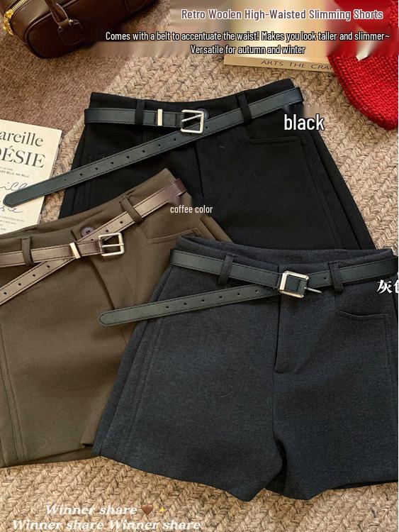 Gray Wool Blend High-Waisted Wide-Leg Shorts for Women - Autumn/Winter Versatile Outerwear