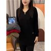 Plus Size Women's Double-Sided Velvet & Fleece Split Sleeve Autumn Winter Slimming Base Layer Top