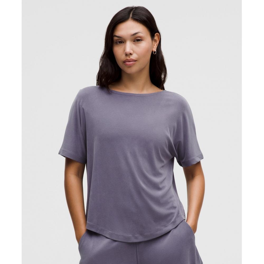 Lululemon Drapey Softstreme Boatneck Short Sleeve Shirt Grape Mist — tüm dünyaya ücretsiz teslimat ile online ürün satın alın!