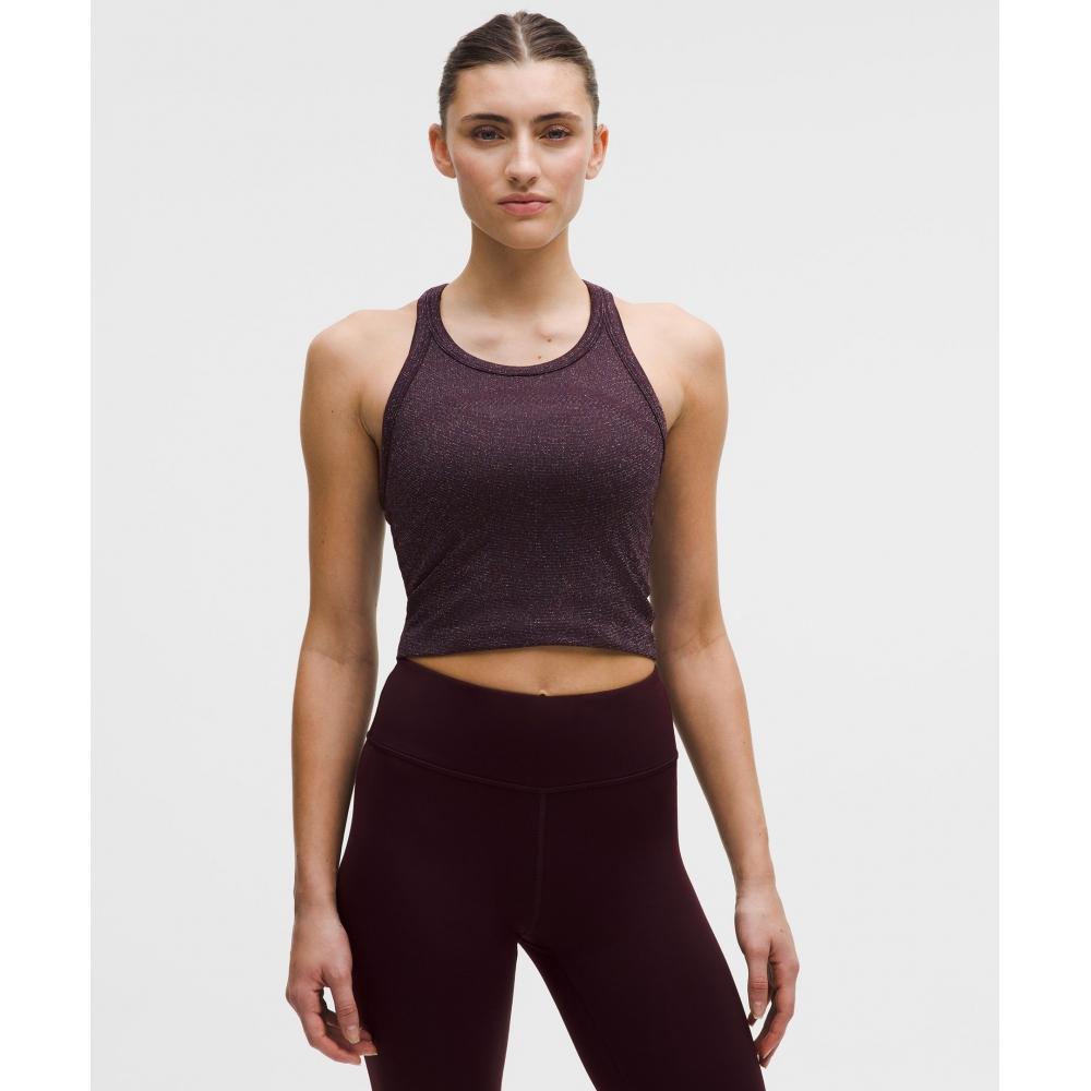 Lululemon Swiftly Tech Cropped Round Neck Racerback Tank Top 2.0 Sparkle Black Plum Rainbow Lurex