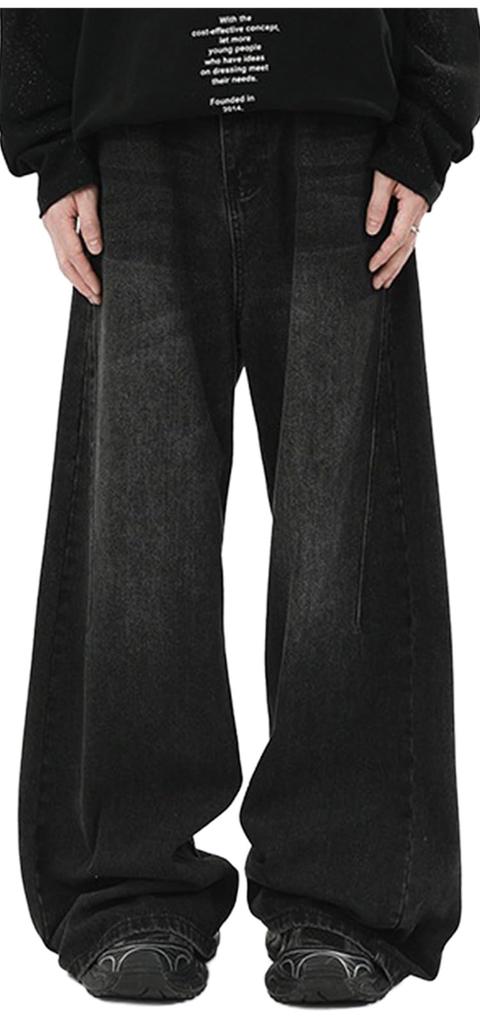 Product Name: FLOWRISE Men's Wide Denim Pants Distressed Relaxed Fit Black XL FL343