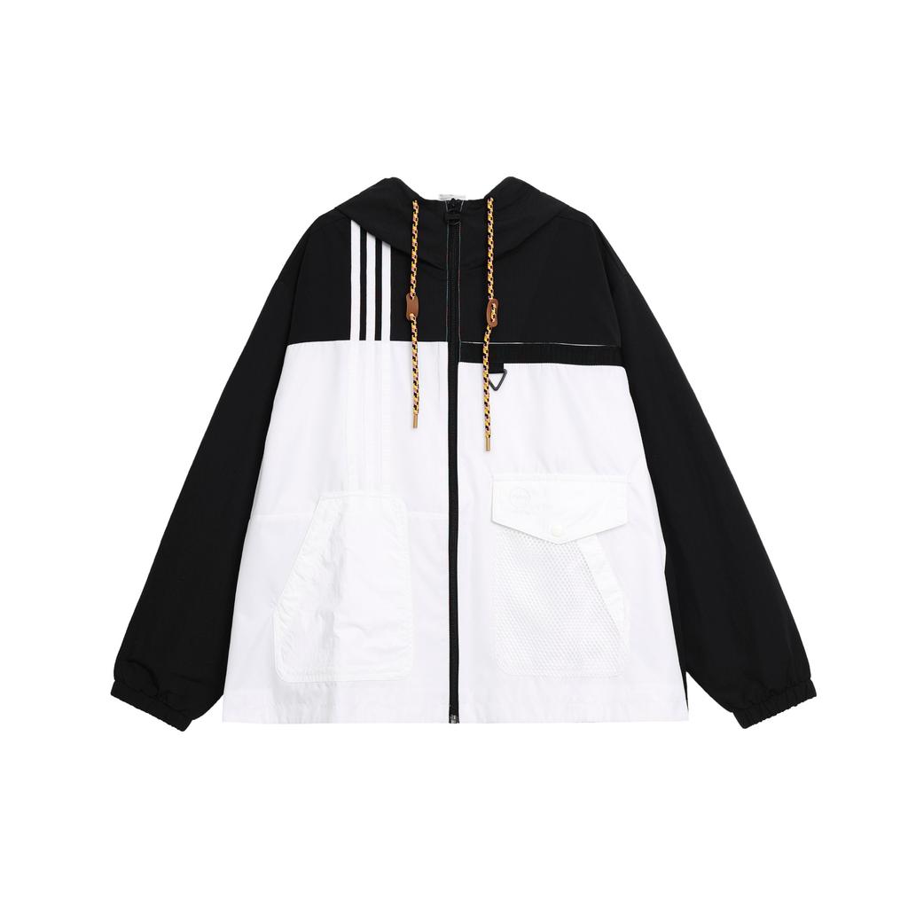 Adidas Neo W Util Wb3 Color Block Drawstring Loose Hooded Long Sleeve Jacket Women jackets Black White HN2321