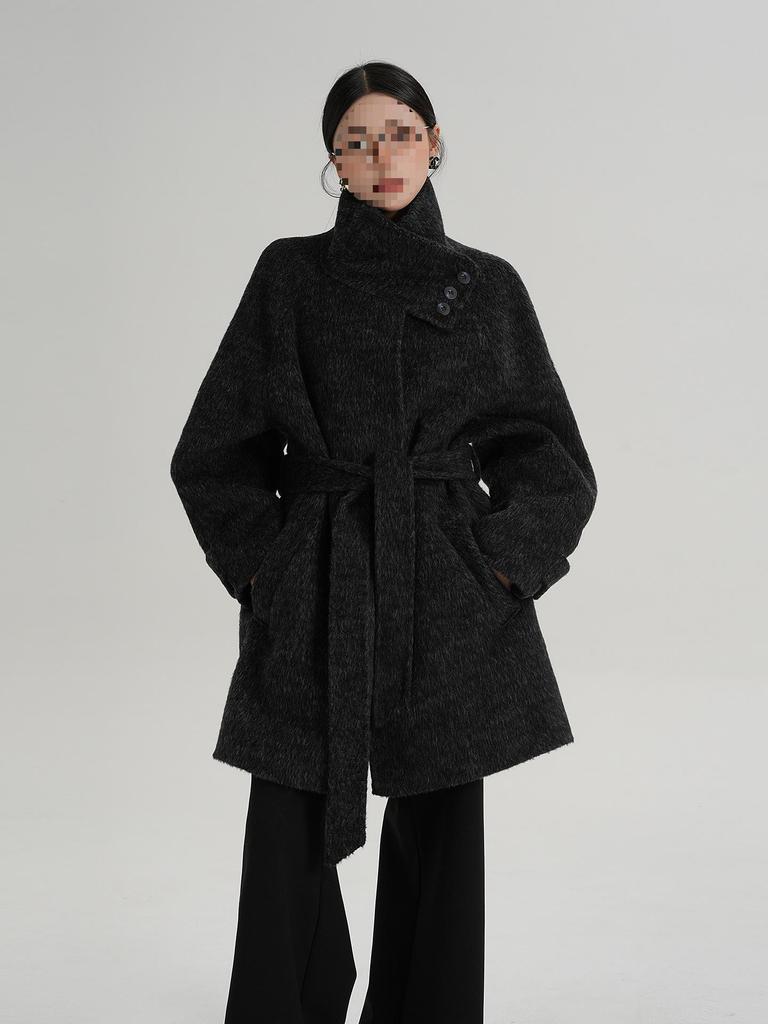 SRYS AME Women's Elegant Mid-Length Stand-Up Collar Wool Coat – Autumn/Winter — tüm dünyaya ücretsiz teslimat ile online ürün satın alın!