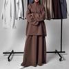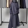 2025 Women's Casual Loose Drapey Half-Zip Top & Skirt Two-Piece Set — tüm dünyaya ücretsiz teslimat ile online ürün satın alın!