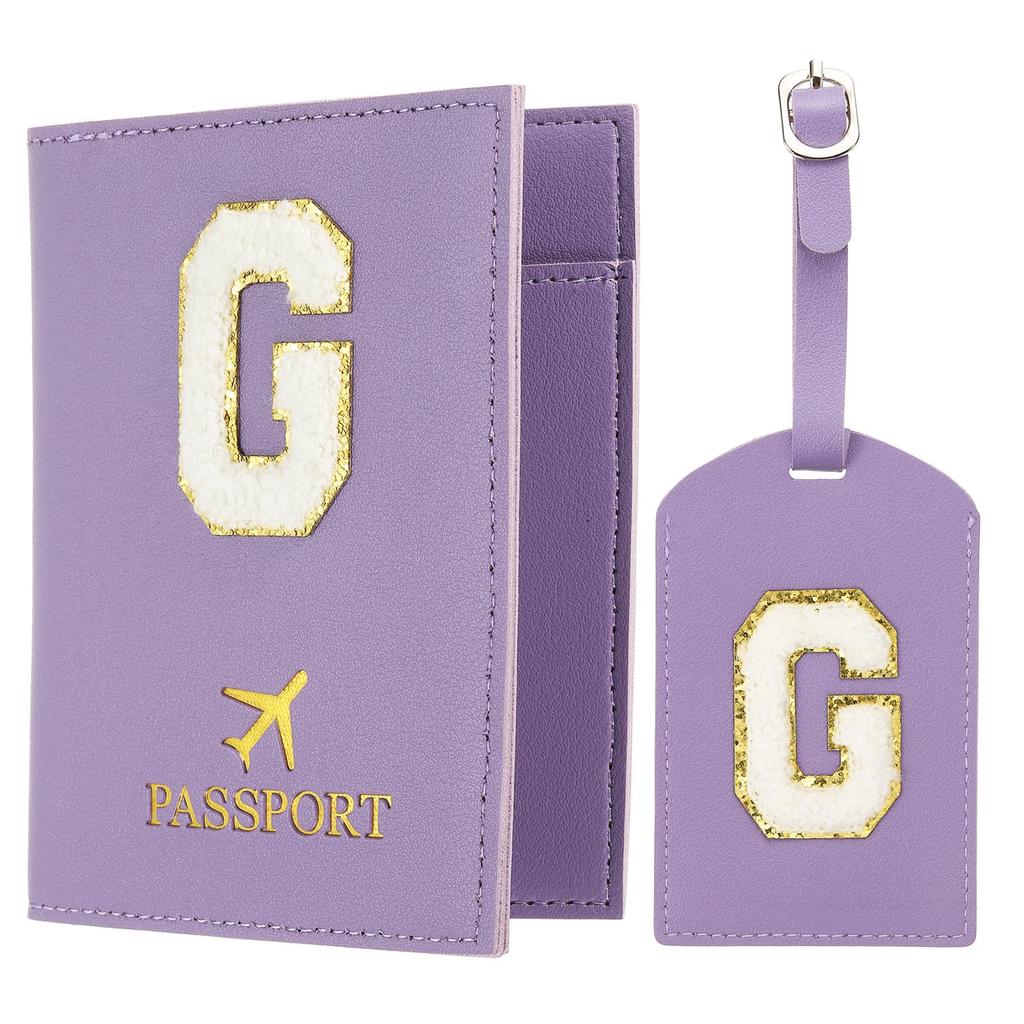 Travel Passport Luggage Tag Set with Initial Passport Cover and Alphabet Chenille Letter Travel Wallet Bag Suitcase Identifier for Women and Family