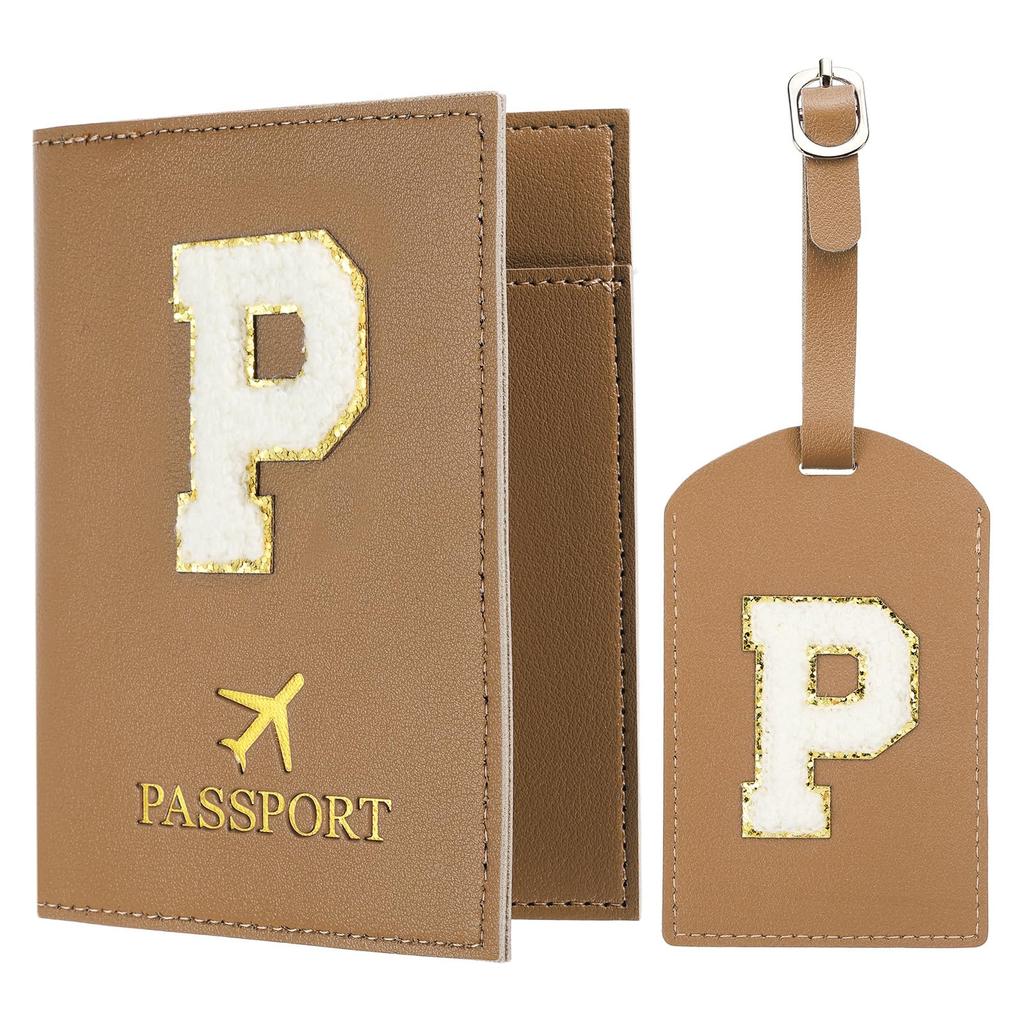 Travel Passport Luggage Tag Set with Initial Passport Cover and Alphabet Chenille Letter Travel Wallet Bag Suitcase Identifier for Women and Family