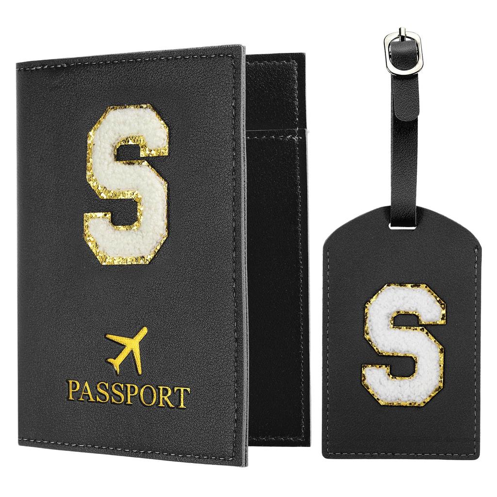PATIKIL Travel Passport Luggage Tag Set with Initial Passport Cover and Alphabet Chenille Letter Travel Wallet Bag Suitcase Identifier for Women and
