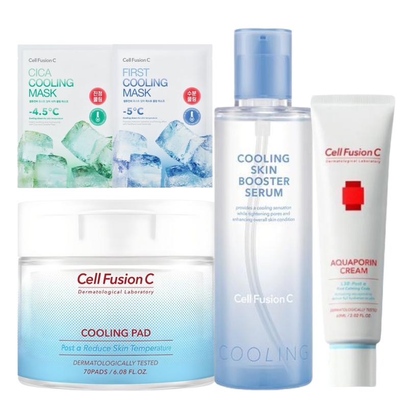 Soothe overheated and irritated skin with the Cell Fusion C Post Alpha Cooling skincare set. Designed to calm sensitive skin after sun exposure or environmental stress, this routine delivers refreshing cooling care and long-lasting hydration. The sheet mask provides intensive soothing treatment, while the cooling pads gently exfoliate and refresh the skin. The skin booster serum hydrates and revitalizes, and the Aquaporin cream locks in moisture to maintain smooth and balanced skin.