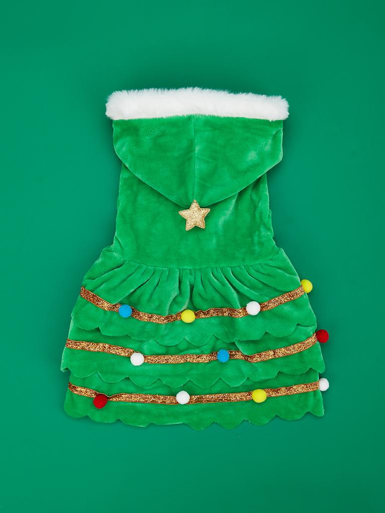 Dog Christmas Tree Cosplay Dresses Puppy Dress with Hairball and Stars Puppy Fuzzy Clothes Doggie Xmas Party Pet Cat Warm C