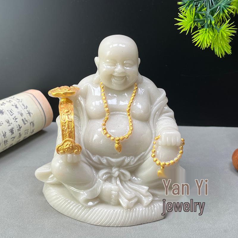 Ivory White Maitreya Laughing Buddha Tea Pet Ornament for Desktop or Car Feng Shui Decor — tüm dünyaya ücretsiz teslimat ile online ürün satın alın!