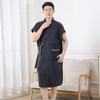 Unisex Plaid Absorbent Bath Towel Robe - Short Sleeve Couplet for Men and Women