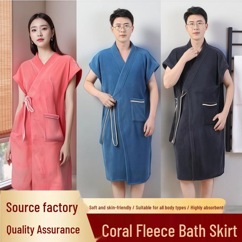 Unisex Plaid Absorbent Bath Towel Robe - Short Sleeve Couplet for Men and Women — tüm dünyaya ücretsiz teslimat ile online ürün satın alın!