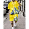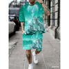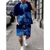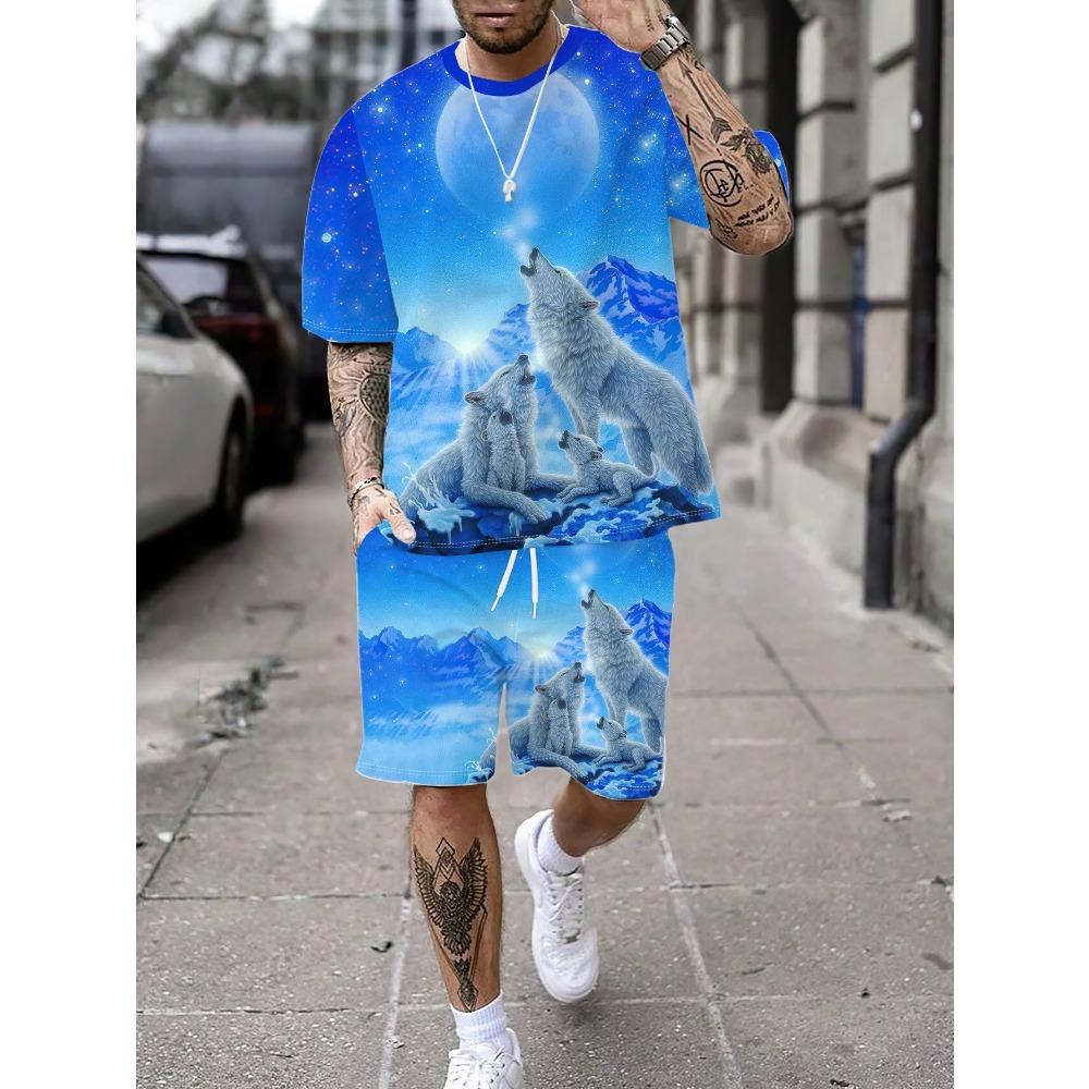 Men's Starry Sky Wolf Pack Print Short-Sleeved T-Shirt and Shorts Set